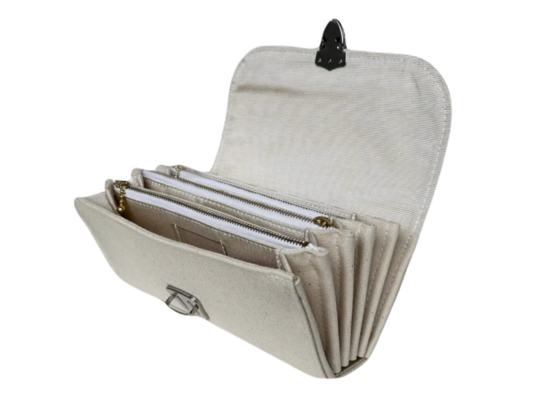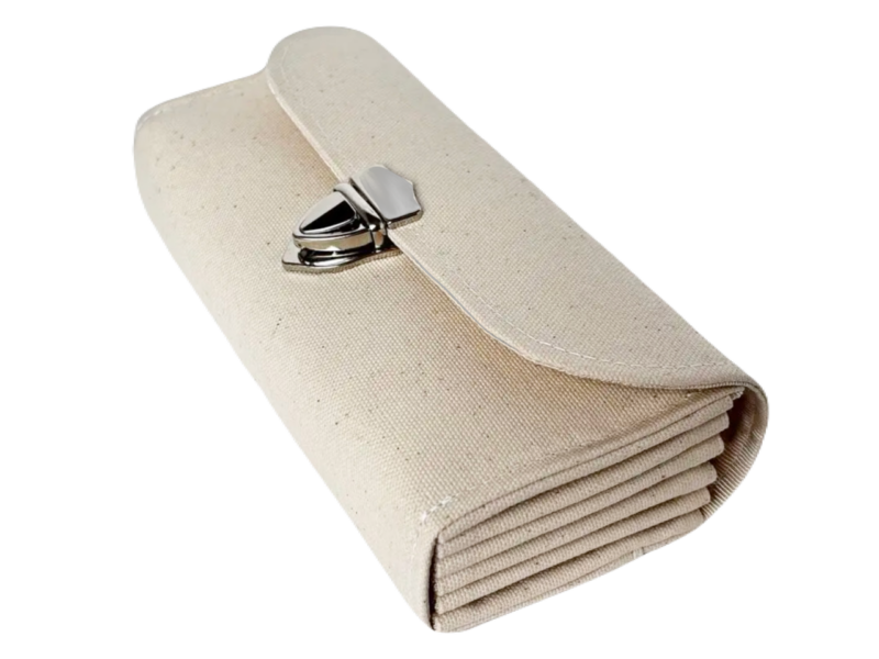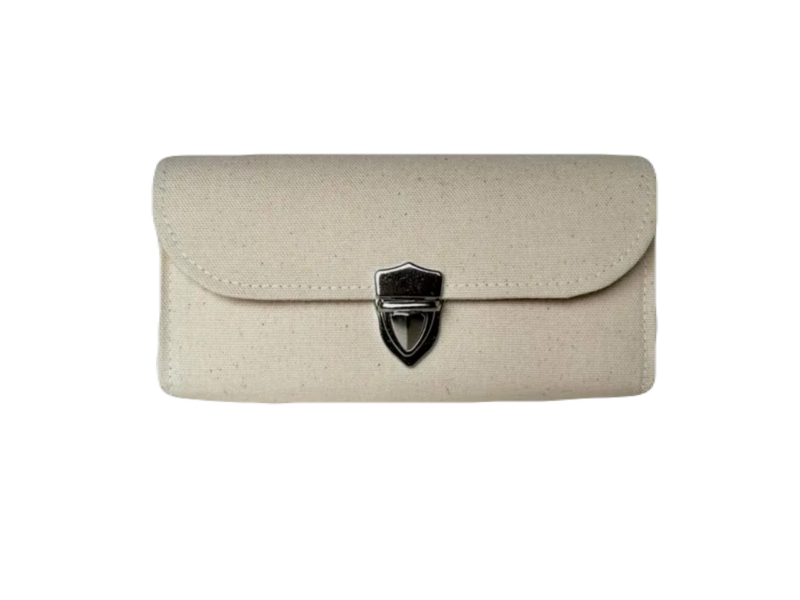 こちらのお財布は11号帆布で製作しています。フラップ開閉型やりくり財布と同じく、どのお財布も厚めの接着芯を貼り製作していますので、とてもしっかりしてハリのある仕上がりになっています。