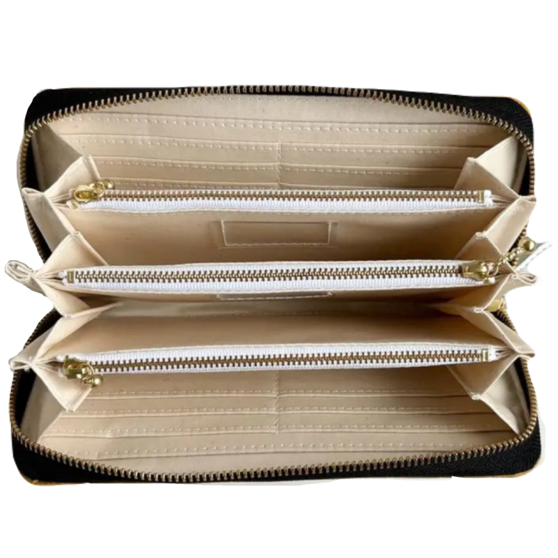 現在、フラップ開閉型・ラウンドファスナー型の2種類のお財布を製作・販売しています。