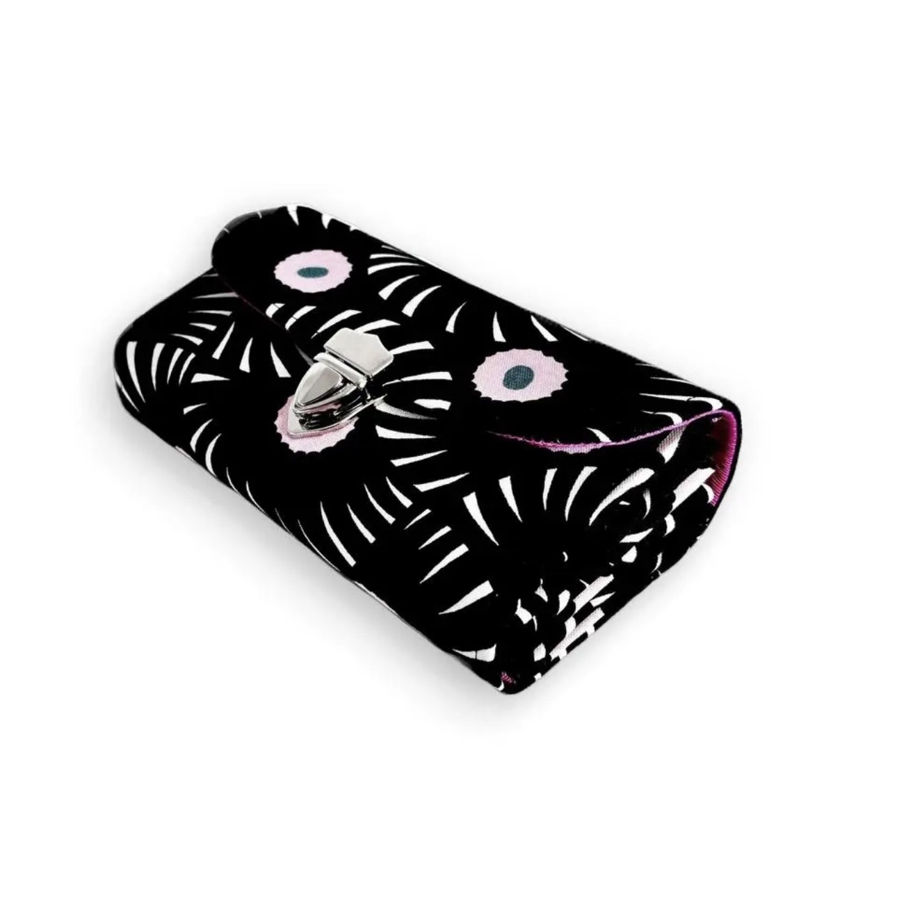 アスター柄のブラックのオックス生地に厚手の芯を貼り製作しています。