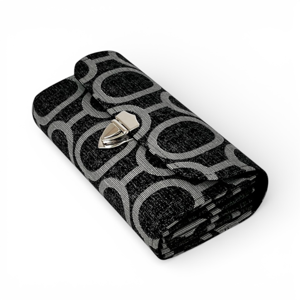 サークル柄のオックス生地に厚手の芯を貼り製作しています。