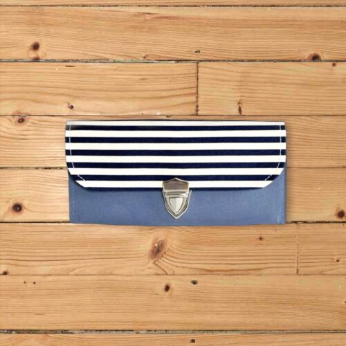 フラップ開閉型•家計やりくり財布•3費目管理用・ネイビーストライプ・お札ポケット