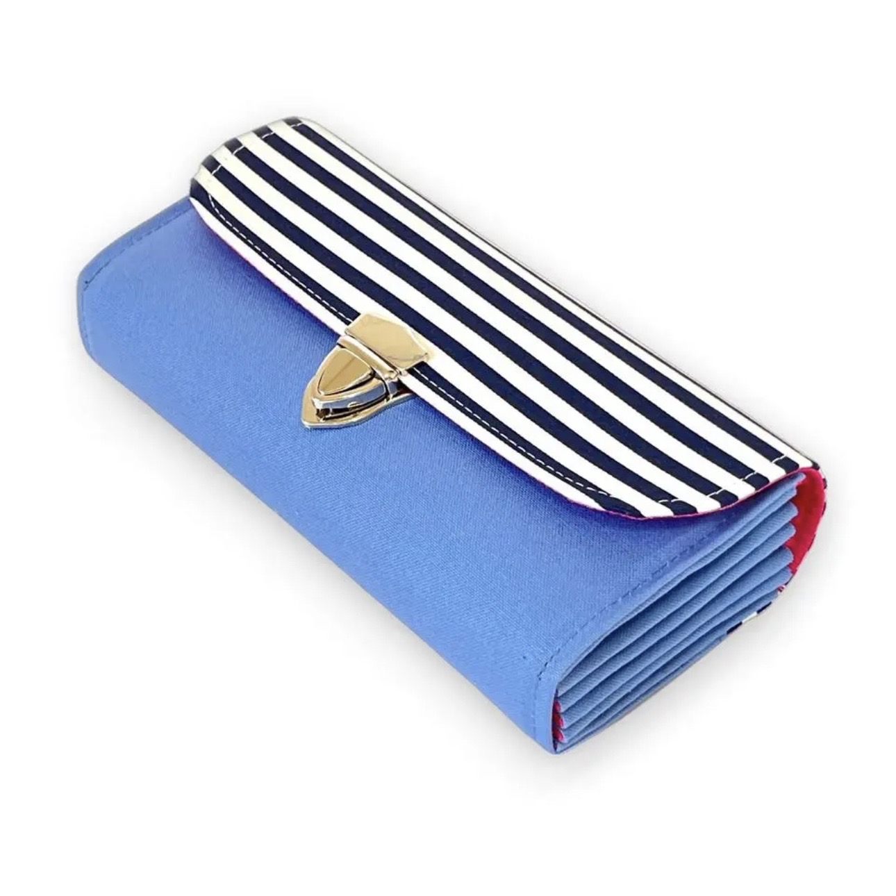 フラップ開閉型•家計やりくり財布•3費目管理用・スカイブルー×ボーダー・お札ポケット